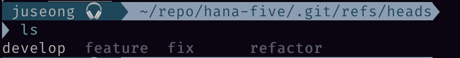 cd ./.git/refs/heads 로 경로를 이동해서 list를 확인해보았다.